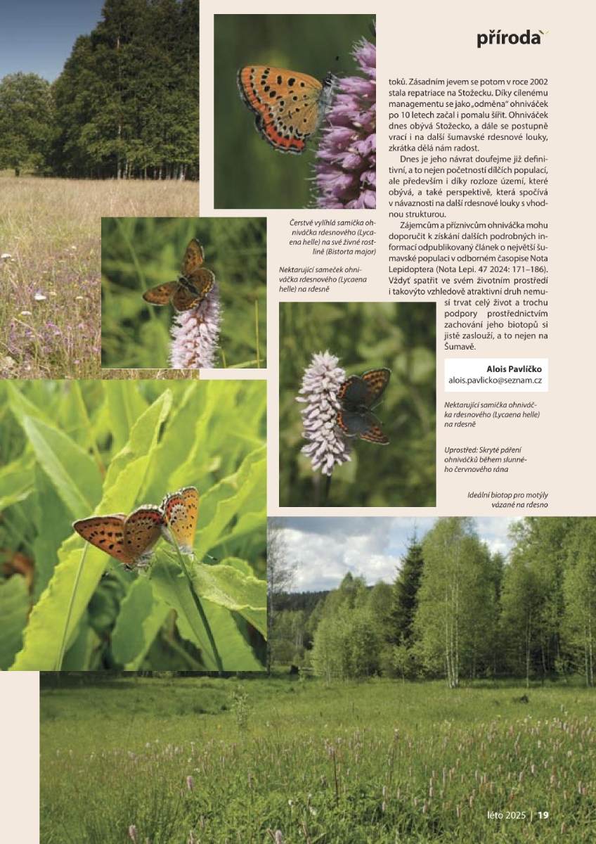 Ohniváček rdesnový, který z české přírody vymizel v roce 1952, byl od roku 2000 úspěšně reintrodukován. Jeho populace se postupně stabilizuje.