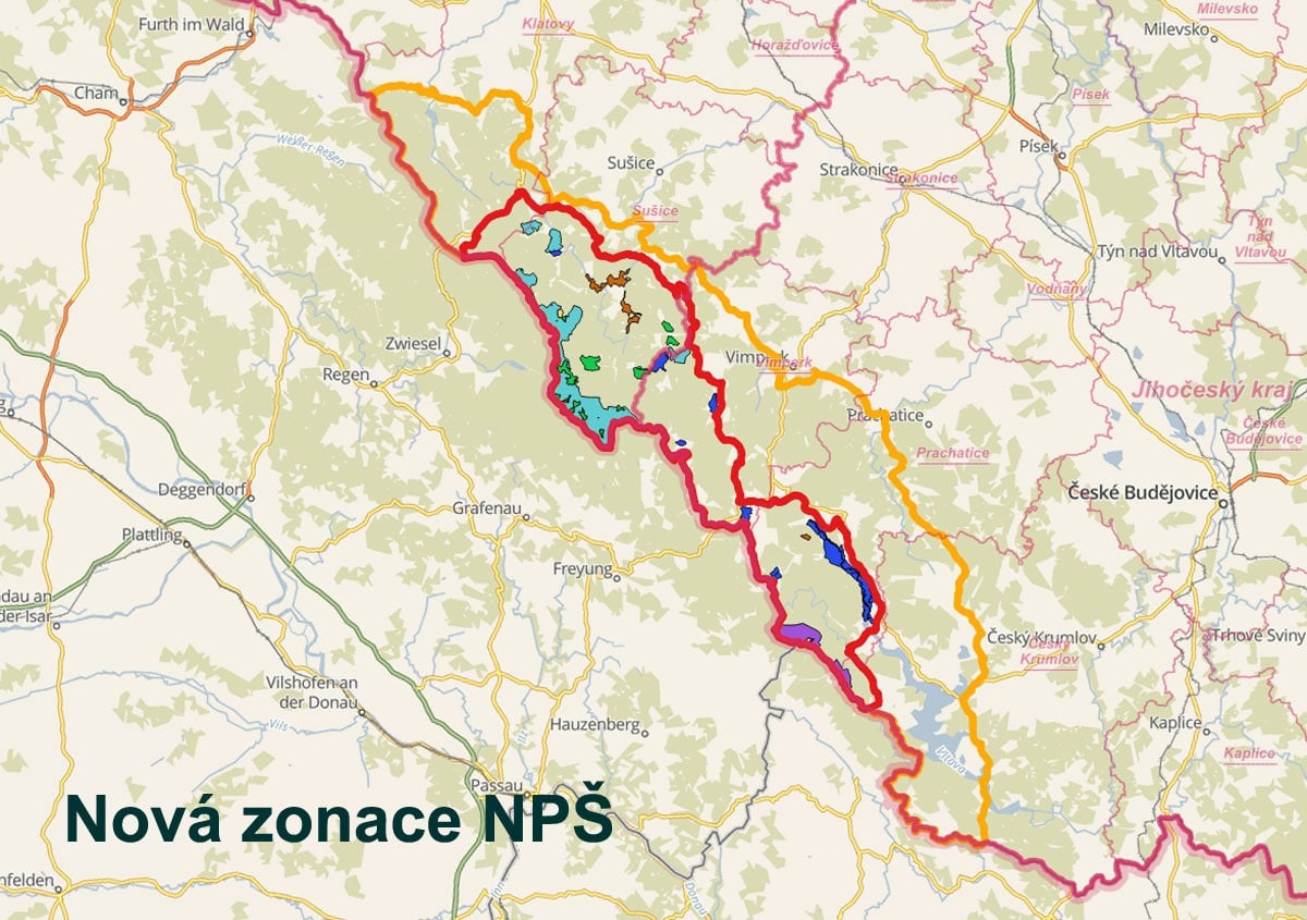 - Die Zonierung des Nationalparks Šumava stellt eines der wichtigsten Dokumente dar, nach dem auf einer Fläche des Nationalparks von 68 460 ha im Rahmen des Managements vorgegangen wird.