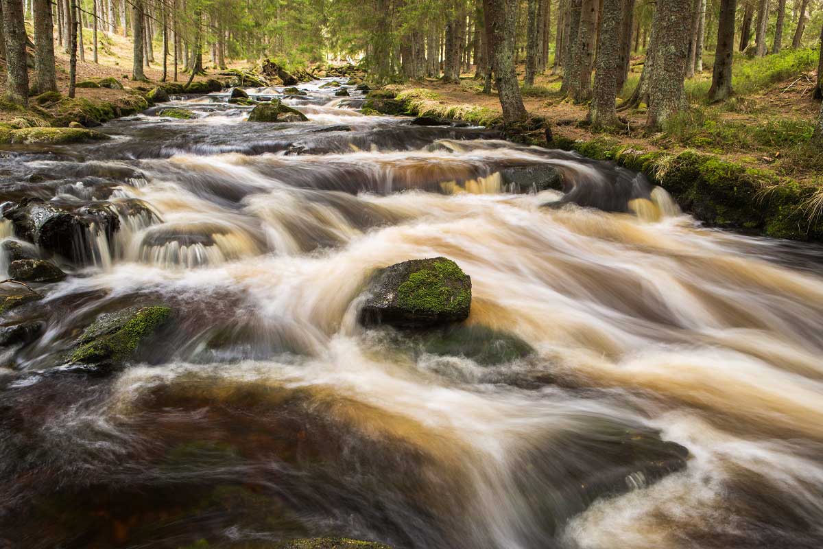 Your steps then continue steeply upward along the stream of Zhůřský potok as far as Zhůří – a height difference of 350 m!