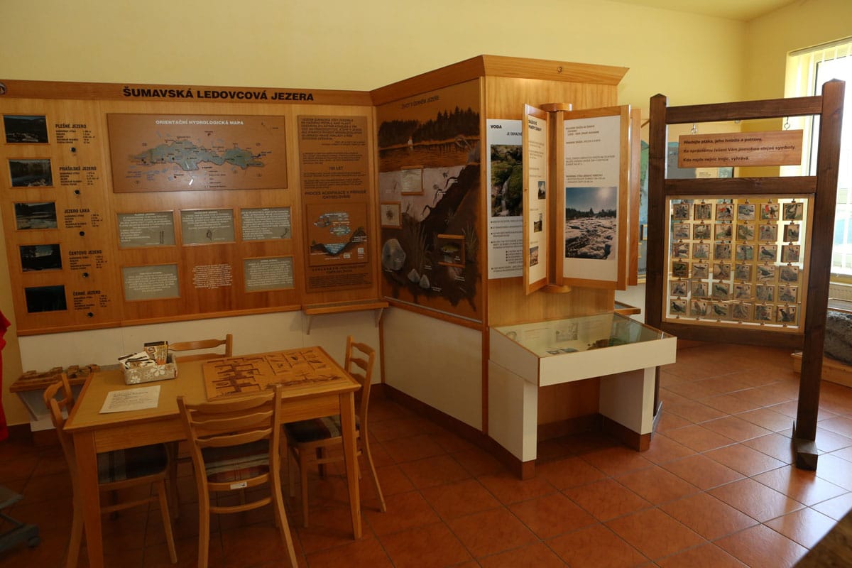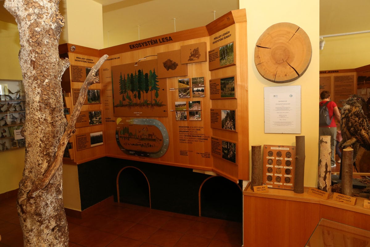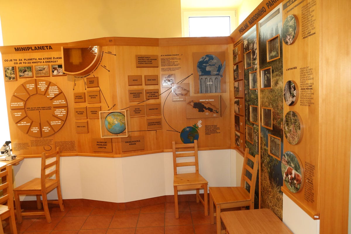- There is an interactive exhibit with information about the uniqueness of Šumava natural systems. The 40-seat screening room provides a range of audiovisual shows dedicated to nature and history.
