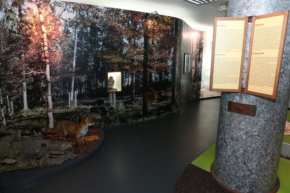 The display area of the Kvilda Visitor Centre is dedicated to mountain forests. It presents two elementary principles of taking care of the forest in Šumava National Park: intervention and non-intervention.