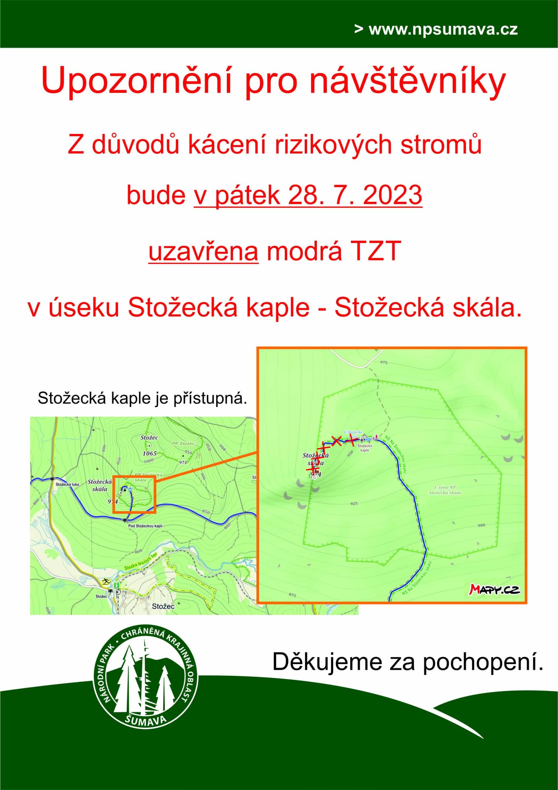 Kácení rizikových stromů v úseku Stožecká kaple – Stožecká skála