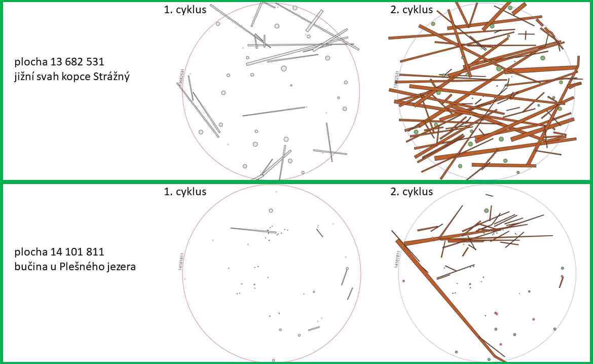 „Živé stromové patro ve druhém cyklu je posílené o malé stromy, které se přehouply z kategorie zmlazení do kategorie stromového patra, a nadvláda smrku se opět posiluje. Smrk dosahuje 78 %, buk 10 %, a břízy 6 %,“ vysvětluje Pavla Čížková.