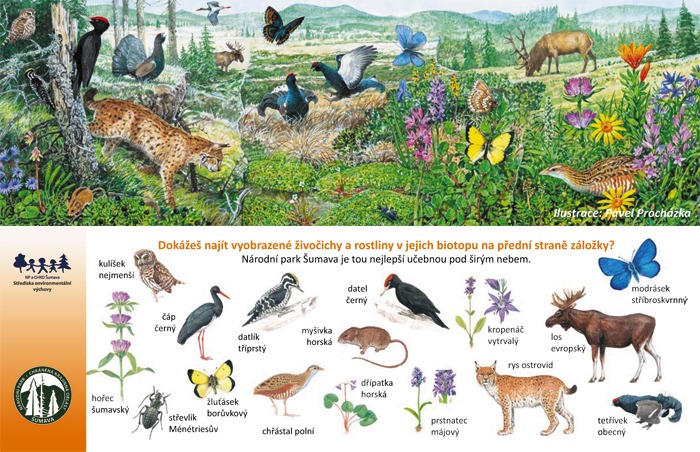 - Kniha s ilustracemi Aleny Fraitové představuje dětem pomocí hravých úkolů biotopy národního parku a chráněné krajinné oblasti Šumava.