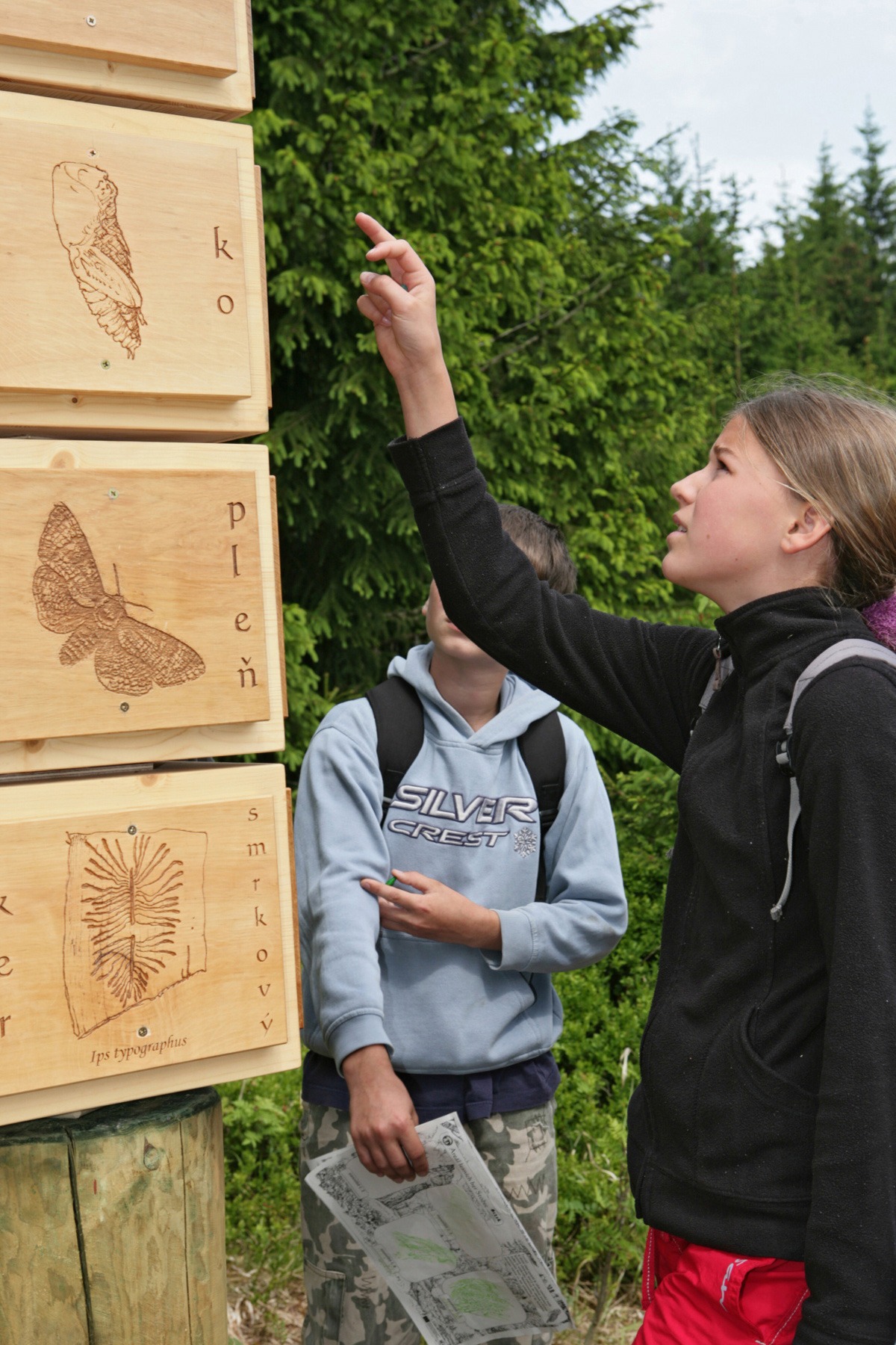 Interaktivní didaktické prvky se věnují třem hlavním tématům: život v lese, obnova lesa a význam tlejícího dřeva.