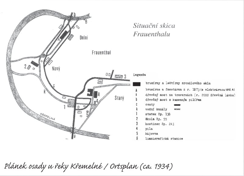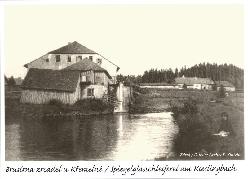 Na pravém břehu Křemelné, v místech, kde původně stávala pouze jediná usedlost sedláka Lenze, byly v letech 1863–1882 vystavěny hartmanickým podnikatelem Isaakem Simonem Blochem čtyři brusírny, leštírny a fazetovny zrcadel. Několik vodních kol pohánělo přes transmise desítky brousících a leštících strojů. Brousila se zde židovská zrcátka, ale i velká zrcadlová skla.