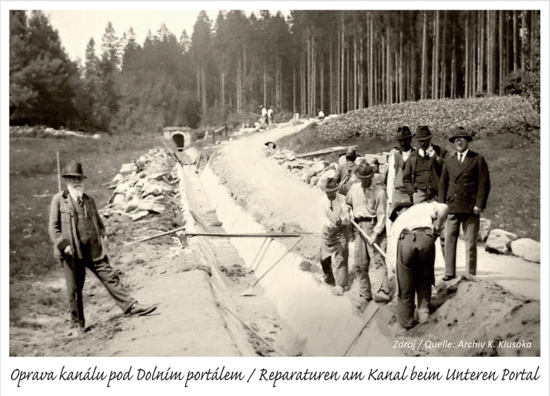 První dřevěné domky zde byly postaveny pro dřevorubce a plavce současně se stavbou plavebního kanálu ke konci 18. století. K původním pěti domkům přibývají časem další a v roce 1945 zde žije ve 38 domech na 260 obyvatel. V roce 1935 tu vyhořel jeden z nejstarších domů, postavený někdy okolo roku 1792, kdy byla osada založena. Jeho obyvatel, svérázný dřevorubec Václav Pasta ho za přispění knížete Adolfa Schwarzenberga v krátké době vystavěl znovu. O Pastovi se v tehdejším tisku psalo, že se ve svém řemesle dokonale vyzná a uchopí-li sebesilnější kmen, samozřejmě vždy za správný konec, tak s ním dovede pohnout!
