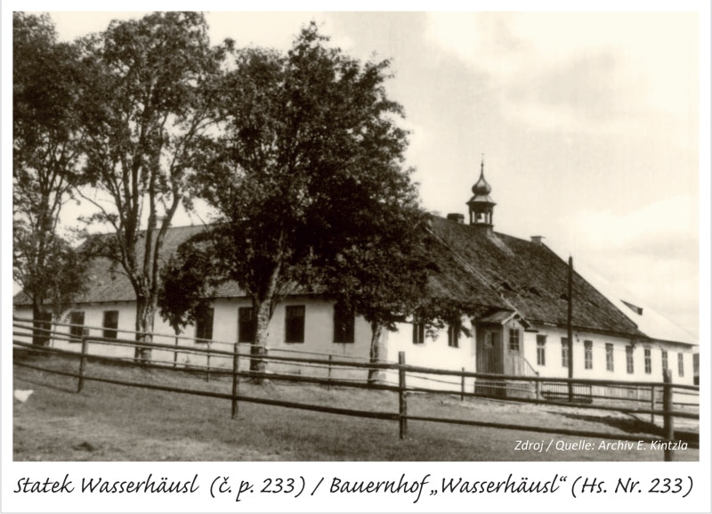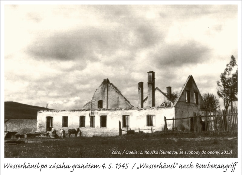 Při nynější asfaltové silničce pracovala pak pila a hamr. Naproti nim stával velký statek Wasserhausl se zvoničkou, který byl zničen zásahem granátu 4. 5. 1945.