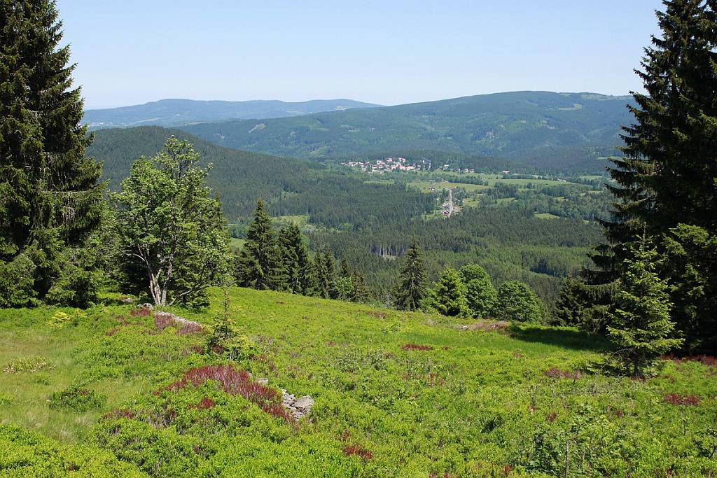 Z travnatých luk a „plantáží“ borůvek dodnes ohraničených kamennými snosy se nabízejí krásné výhledy na Srní a i dále do českého vnitrozemí.