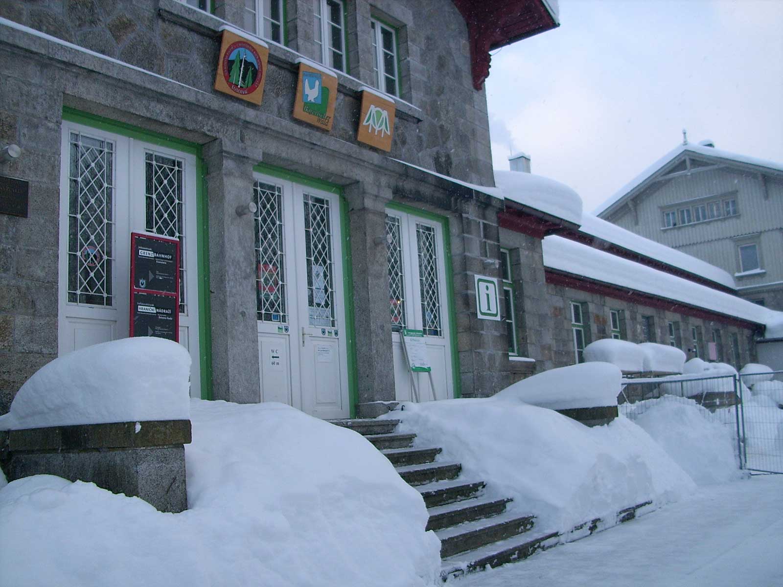 Součástí nádražní budovy je historická restaurace na německé straně.