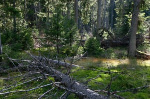 Přítomnost tlejícího dřeva má obrovský význam nejen pro obnovu těchto porostů, ale také pro biodiverzitu. Nové semenáčky se rády uchycují a přežívají na rozložených kmenech a v blízkosti pahýlů.