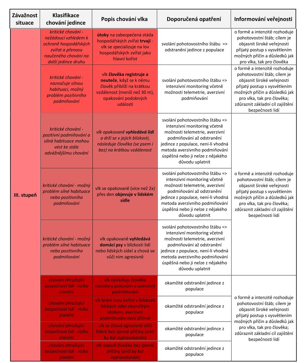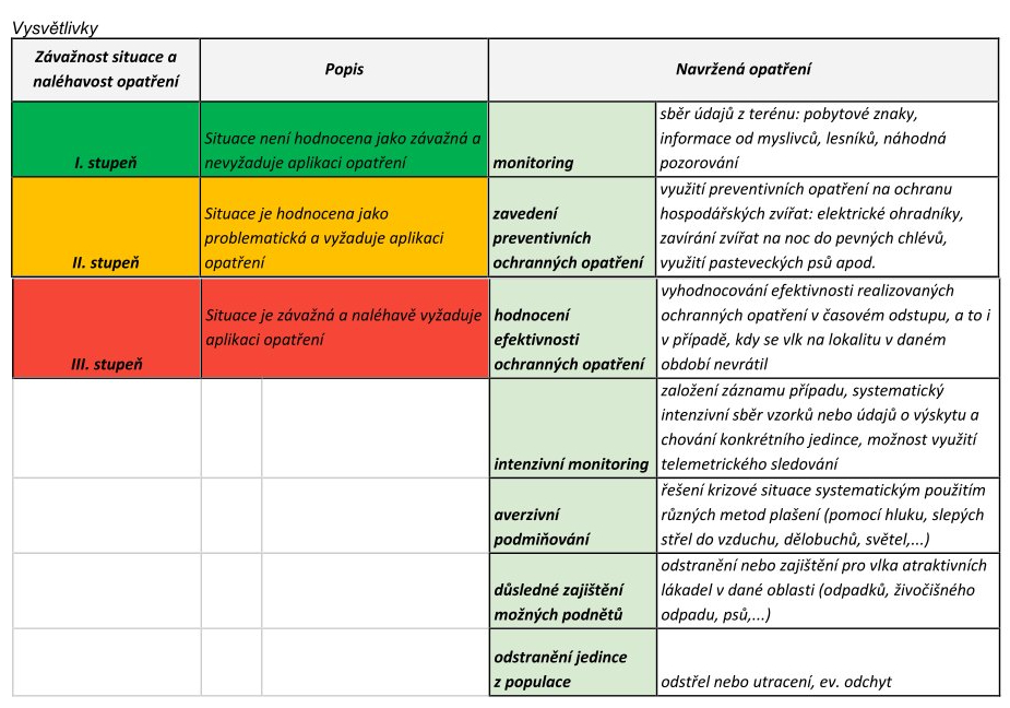 Pohotovostní plán pro řešení situací při výskytu problematických jedinců vlka obecného
