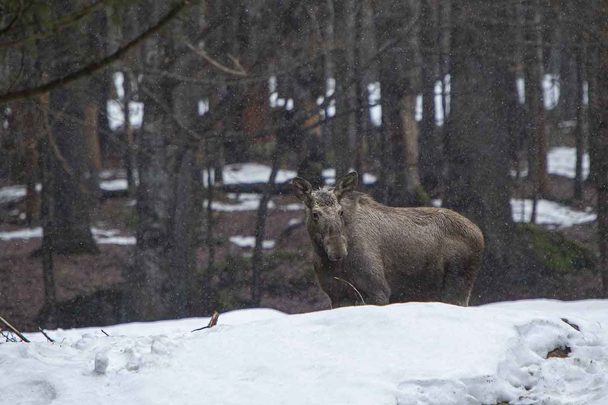 V zimním období samci přijímají potravu méně intenzivně než samice. Množství potravy je přímo závislé na průběhu zimy. V zimním období s vysokou sněhovou přikrývkou a tuhými mrazy se losi pohybují velmi málo a množství konzumované potravy klesá.