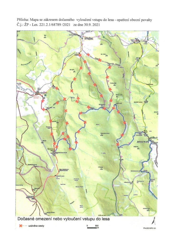 Od 1. 10. do 30. 11. 2021 je vyloučen vstup do lesa v následujících lokalitách: