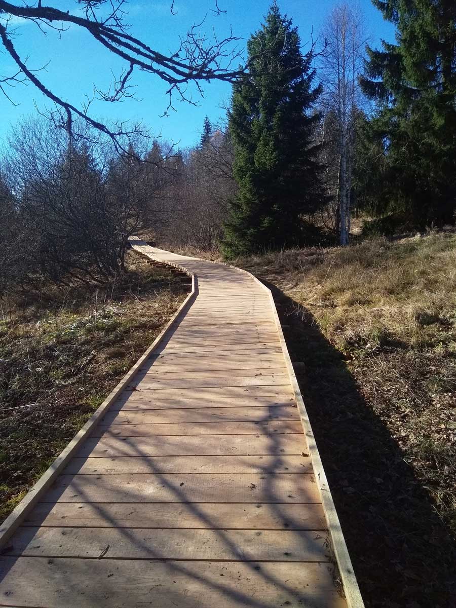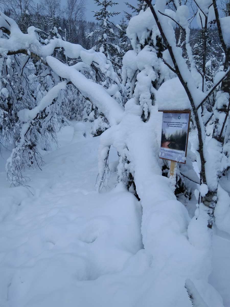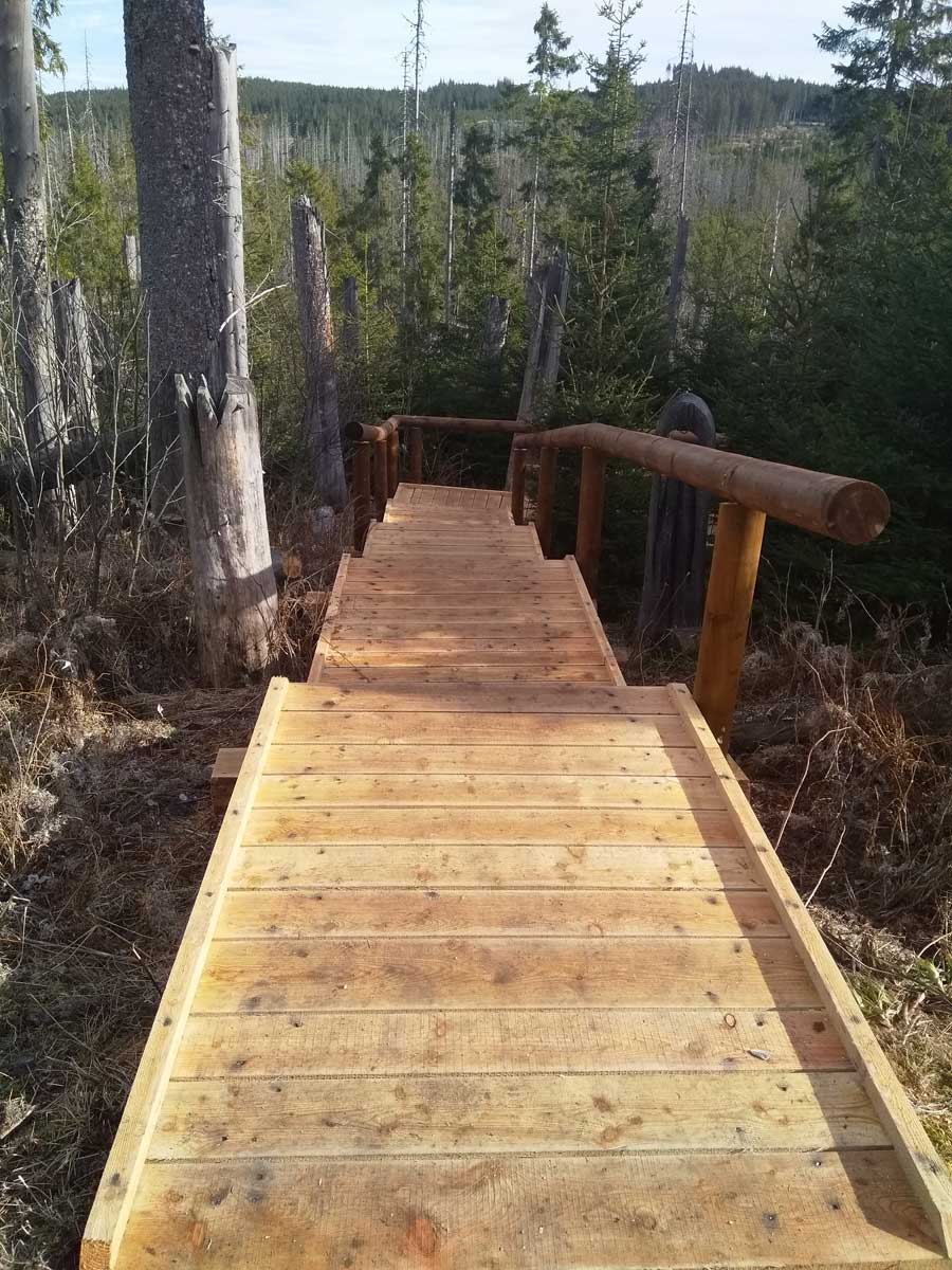 Obnova poválkových chodníků a zábradlí na 4 mimořádně cenných přírodních stanovištích. Jedná se o Jezerní slať, Prášilské jezero, Prameny Vltavy a oblast bývalé osady Vchynice-Tetov. Všechny lokality se nacházejí na území Národního parku Šumava. Součástí realizace prací byla úprava vyrovnání plochy pod vyrovnávací povaly na rostlém terénu. Veškeré dřevěné konstrukce z modřínového dřeva slouží k zajištění vyšší trvanlivosti materiálu bez nutnosti impregnace. Celková obnova 145 m poválkových chodníků. Obnova stávajícího, již nevyhovujícího zábradlí ve 2 mimořádně cenných přírodních lokalitách – Pramenech Vltavy a Jezerní slati. Zábradlí bylo zhotoveno z dřevěných kuláčů ze smrkového impregnovaného dřeva. Celková obnova 255 m zábradlí.