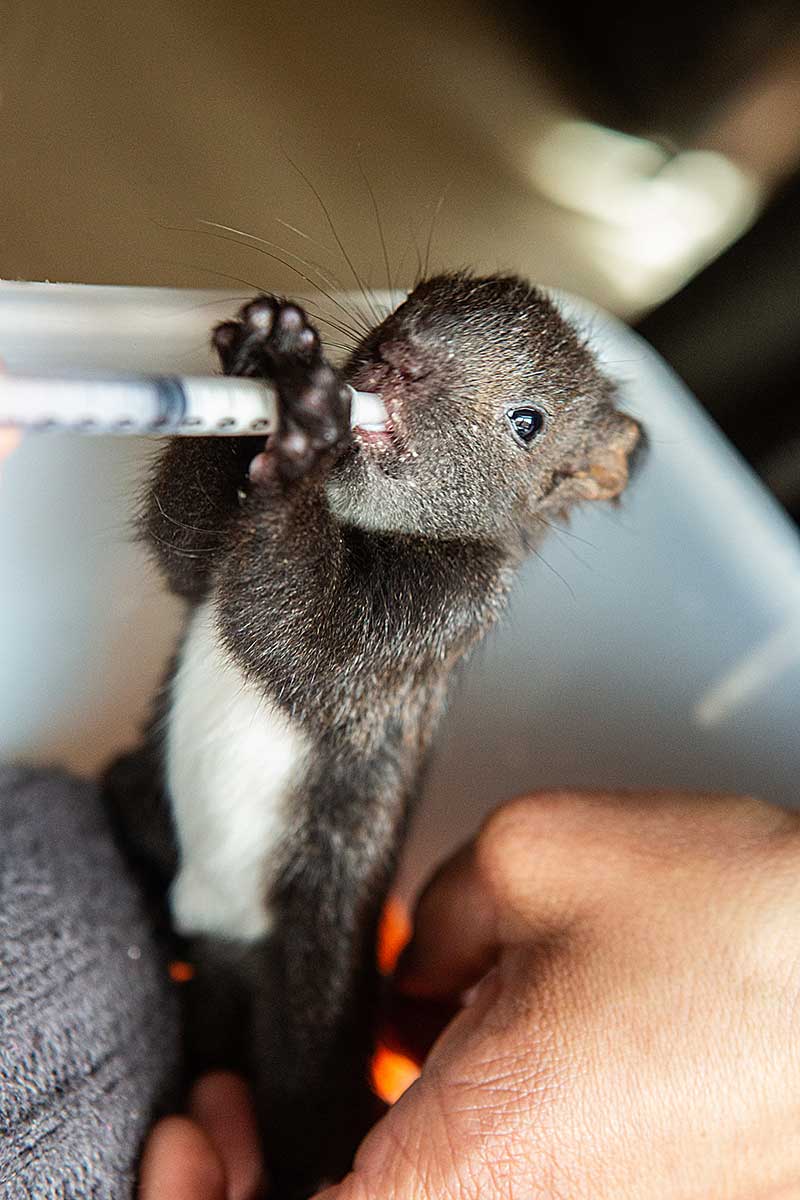 „Mnohdy lidé „zachraňují“ mláďata, která to fakticky nepotřebují. Jedná se třeba o malé, ale už opeřené ptáčky, kteří se učí létat, ale jsou pod dohledem rodičů, nebo jsou to koloušci, které lidé najdou na louce, ale přitom jen čekají na matku, která odběhla,“ zmiňuje Kristýna Falková, která se v takových případech pro tato mláďata stává adoptivní mámou. To jí nastanou krušné časy: „Když se nám do stanice dostane maličkaté mládě nějakého opeřence, je třeba ho pravidelně a přitom velmi často krmit. Časté krmení však probíhá pouze přes den, horší časy nastaly, když jsem doslova vypiplávala třeba mládě veverky. Tomu jsem musela podřídit nejen svůj denní ale i noční program. Prostě jsem se pár týdnů pořádně nevyspala,“