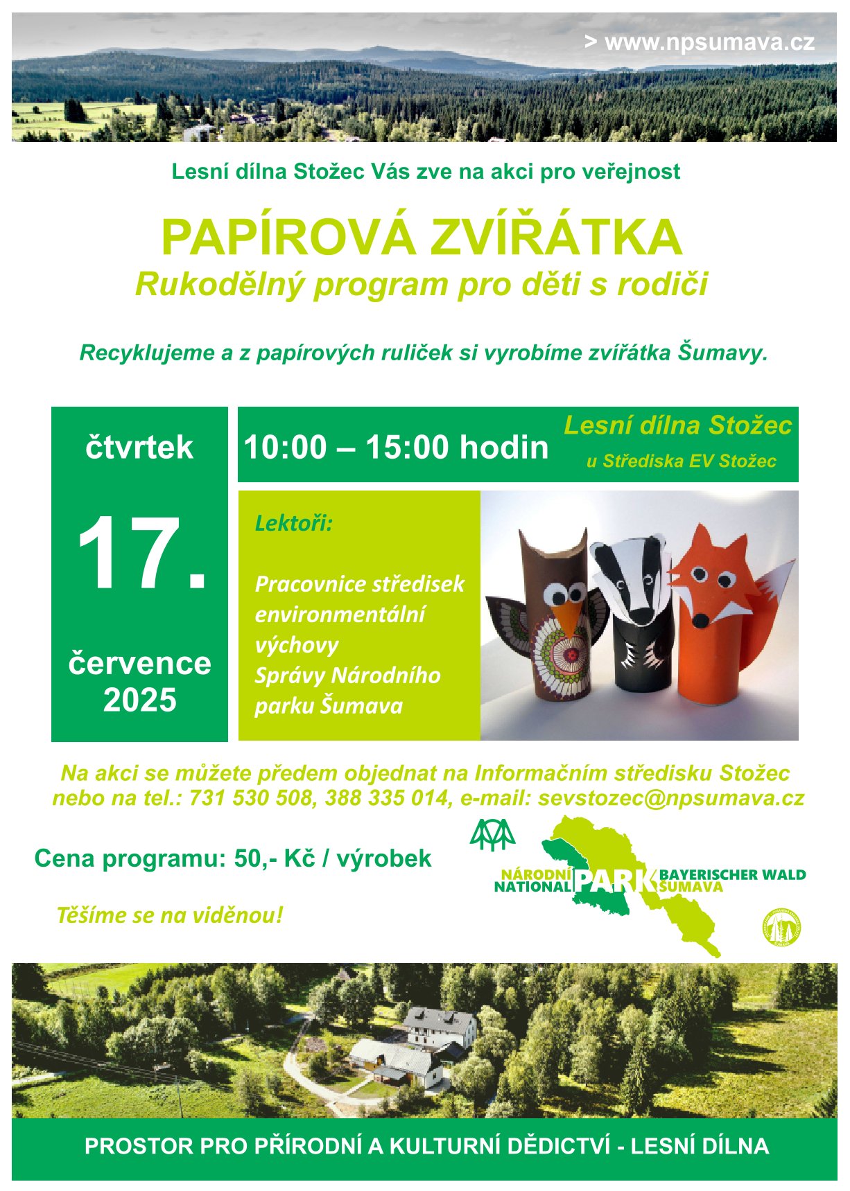 Při toulkách šumavskou přírodou se zastavte u nás ve Stožci. Vyrobíme si zvířátka, se kterými se můžeme setkat na Šumavě z papírových ruliček a barev.