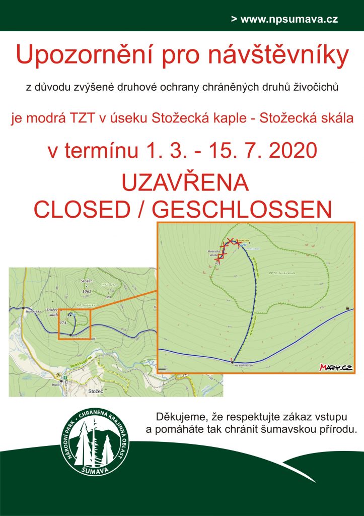 Uzavření úseku Stožecká kaple – Stožecká skála