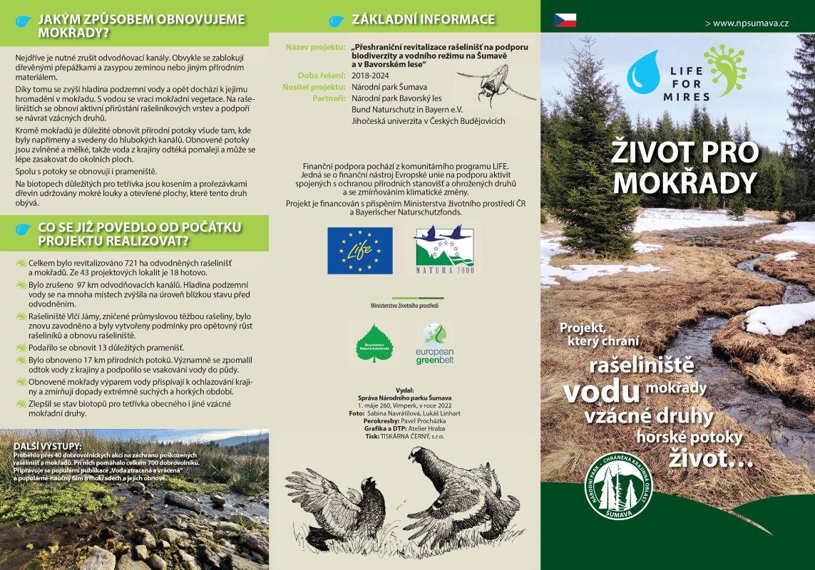 Sedmiletý projekt LIFE for Mires (Život pro mokřady) je již minulostí. Unikátní projekt za více než 150 milionů korun, který ve střední Evropě zatím nemá obdoby, zajistil opětovné zavodnění Šumavské krajiny, která byla v minulosti masivně odvodňována.