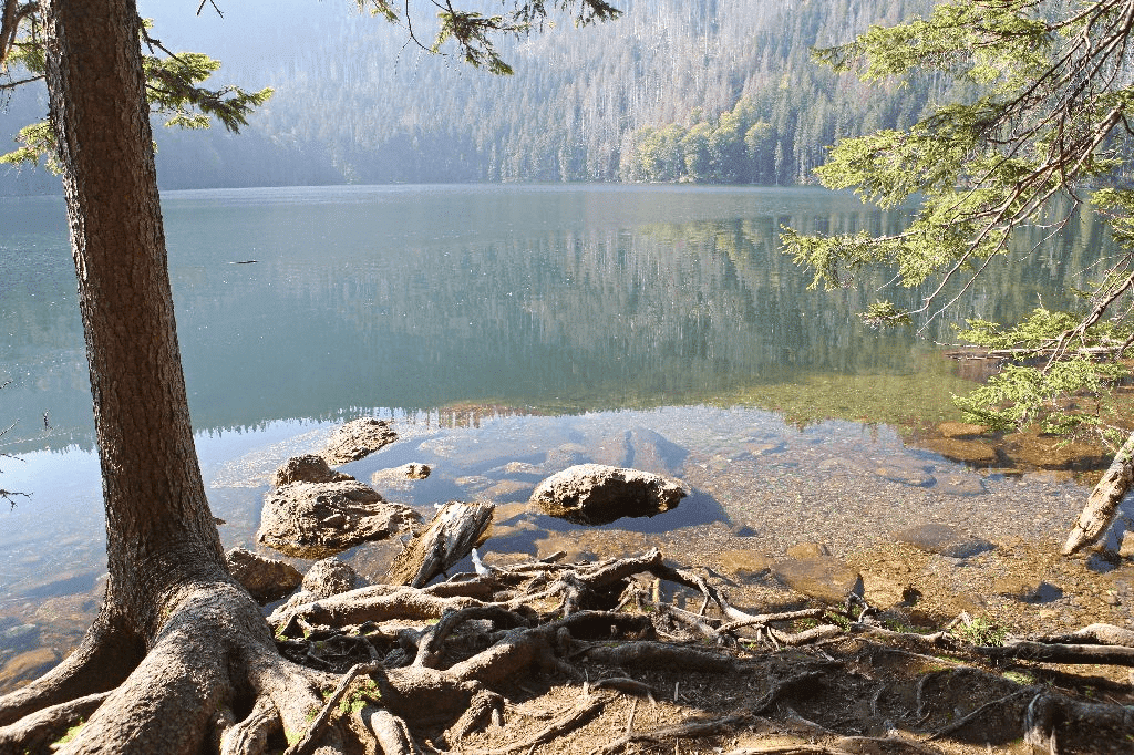 Mezi jezery prochází hlavní evropské rozvodí, a tak voda z Černého jezera teče do Severního moře, zatímco z Čertova jezera odtéká přes Dunaj do Černého moře.