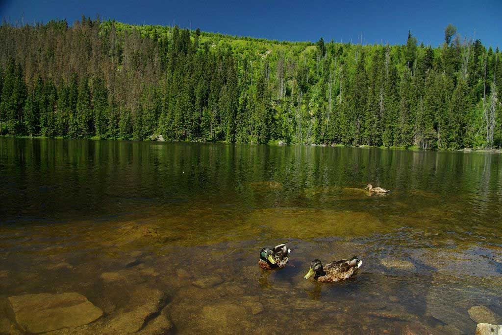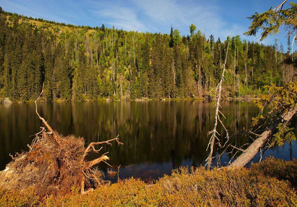 Přímo z Prášil (nebo z parkoviště Slunečná) vyrazíme k Prášilskému jezeru (červená TZT).