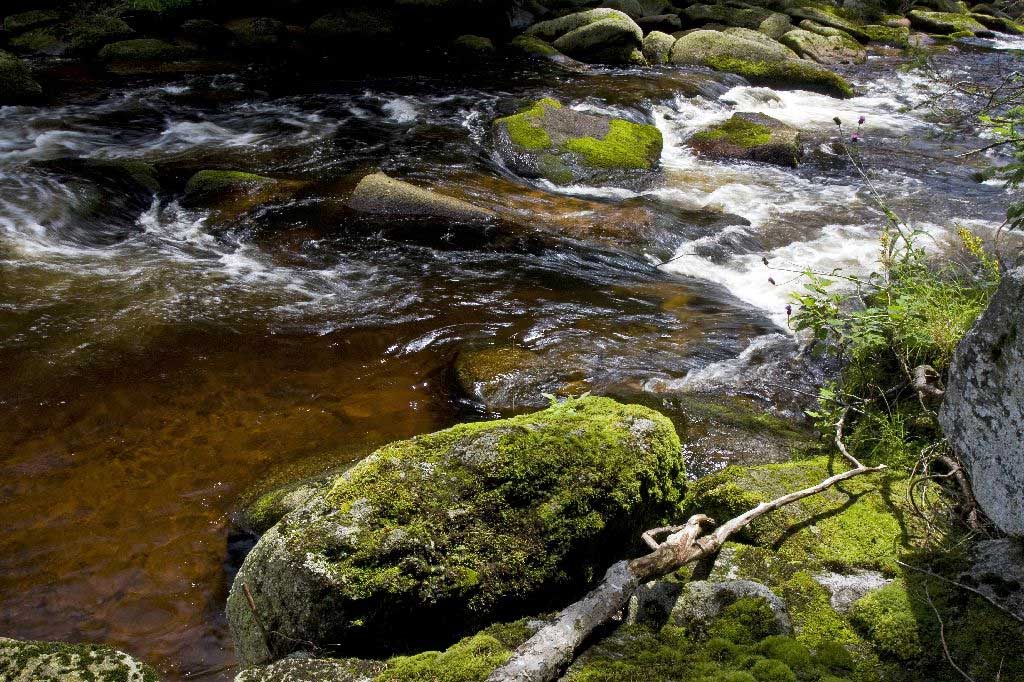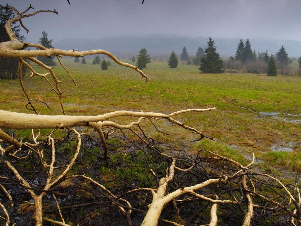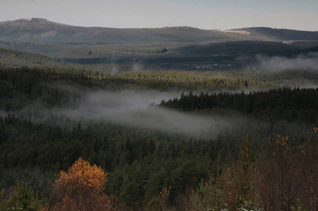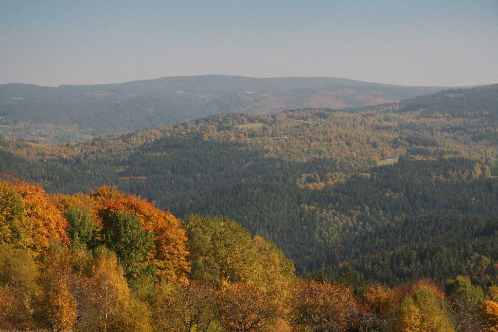 Z parkoviště Velký Bor sejdeme do kaňonu Křemelné (modrá TZT), a pak již stoupáme po úpatí hory Křemelné.