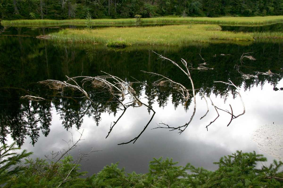 Přes horské sedélko Zlatý stoleček, kde si pašeráci měli předávat paš, dorazíme k jezeru Laka – 2,5 ha, h = 3,9 m, 1 090 m n. m.