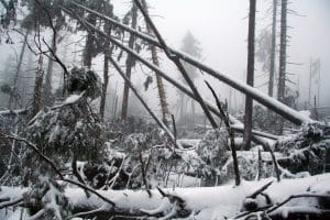 Pod tíhou sněhové pokrývky dochází k vývratům a zlomům stromů, jejich částí, tedy špiček, větví a to na celém území NP a CHKO Šumava.